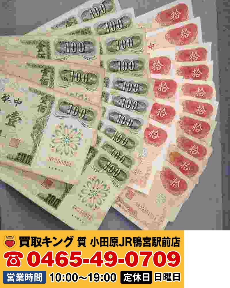 【銀行で断られた旧紙幣は買取キングへ!・海外旅行で余った外貨が眠っていませんか?MONEY EXCHANGE/外貨両替はお近くの買取キングで!】小田原市よりご来店!中華民国/台湾ドル800ドル分 旧紙幣 を両替 致しました!硬貨もお両替します!少額でもご遠慮なくどうぞ!