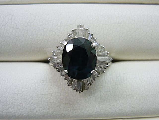 今回お買取りさせていただいたリングは、プラチナ900の台に3.20ctのサファイアと脇石に1.24ctのメレーダイヤがちりばめられたものです。