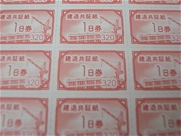 <買取急増中!他店で断られても当店で買います>建退共証紙 1日券 320円 100枚シートをお買取致しました!