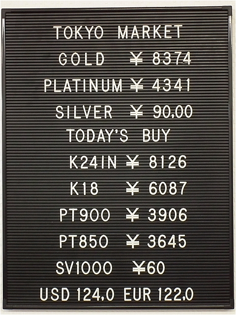 金相場が上昇して8300円を越えています!金を売るなら今しかない!是非お持込ください!