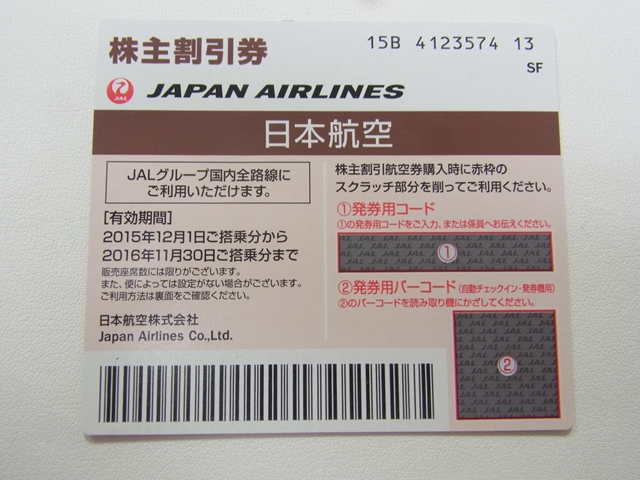 日本航空/JAL 株主優待券 11/30までお買取りさせて頂きました!