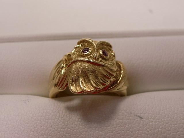 | 買取商品 | K18金ルビー付フクロウモチーフリング |