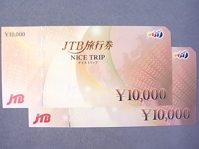 JTB旅行券ナイストリップ10000円券2枚を額面の93.5%でお買取りさせて頂きました!