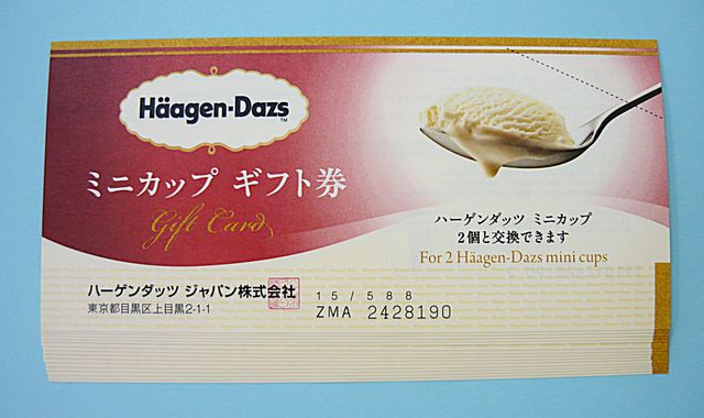 伊東市内からお越しのお客様から ハーゲンダッツ ミニカップ ギフト券 × 15枚 をお買取りさせていただきました!
