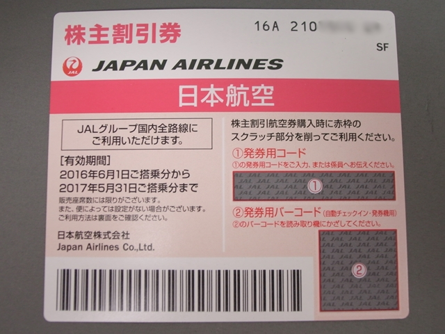 | 買取商品名 | JAL株主優待券 |