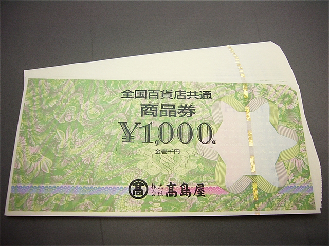 全国百貨店共通商品券/1000円券 30枚をお買取させて頂きました!