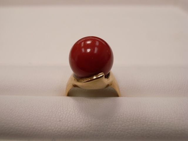 | 買取商品 | K18金 13mm玉赤サンゴ付リング |