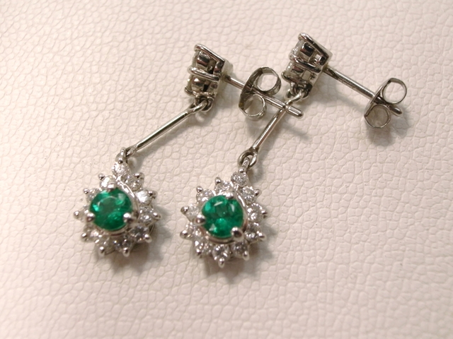 | 買取商品 | プラチナ900 エメラルド・メレーダイヤ付きピアス |