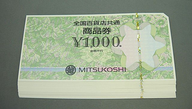 熱海市からお越しのお客様から 全国百貨店共通商品券 1000円 × 50枚 を額面の97%でお買取りさせていただきました!!