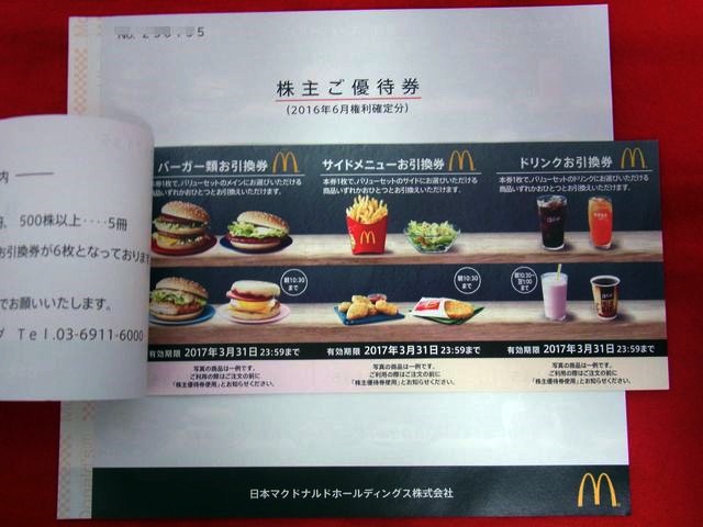 川崎市麻生区よりお越し頂き、日本マクドナルド株主ご優待券×18枚お買取りしました。