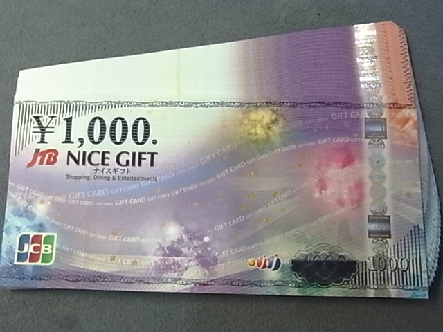 JTBナイスギフト1000円券×20枚を額面の96%でお買取りさせて頂きました!