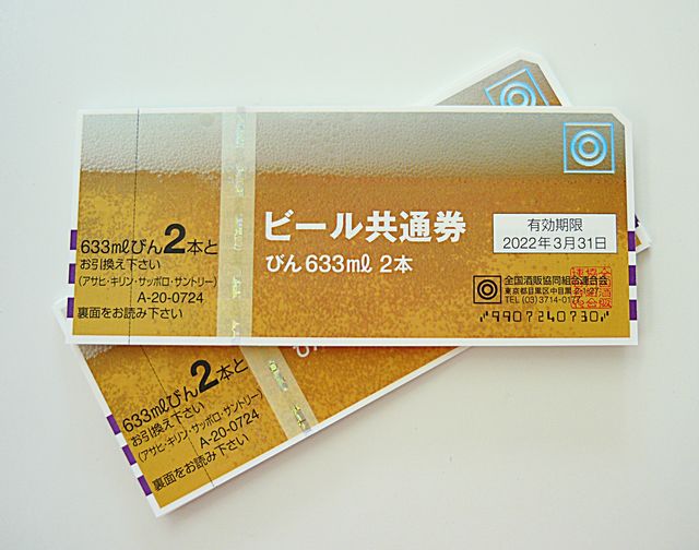 | 買取商品名 | ビール共通券 びん 633ml 2本 × 50枚 |