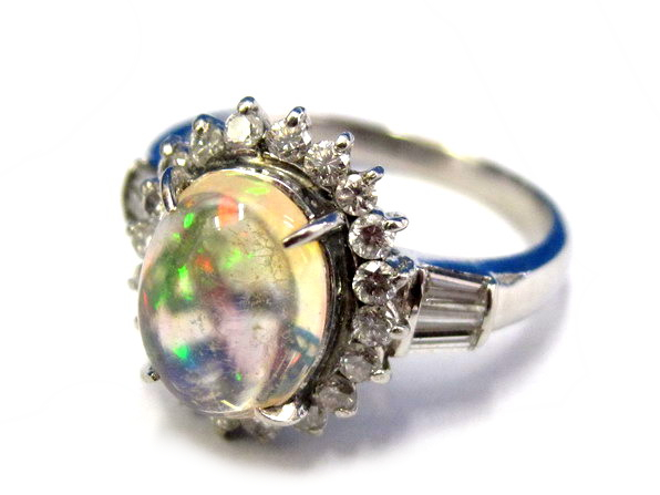 北広島市からお越しのお客様から2.10ctオパール。0.84ctメレーダイヤ付きPT900プラチナリングをお買取りさせて頂きました!