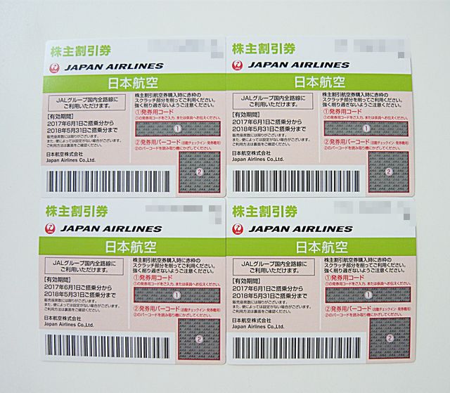 伊東市内からお越しのお客様から JAL 日本航空 株主割引券 × 4枚 をお買取りさせていただきました!!