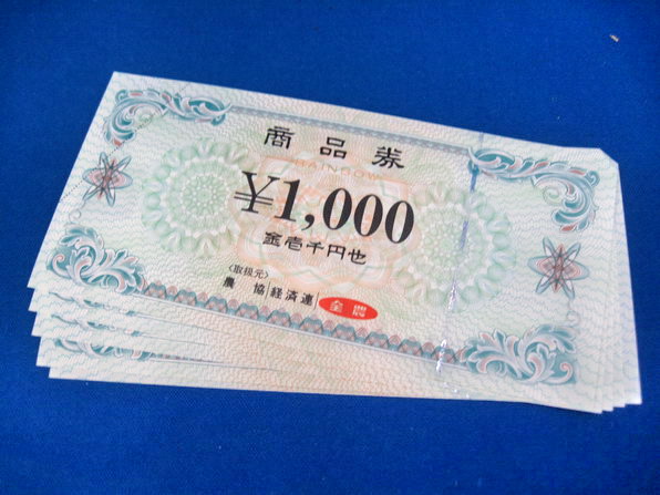 | 買取商品 | 農協全国商品券1000円 |