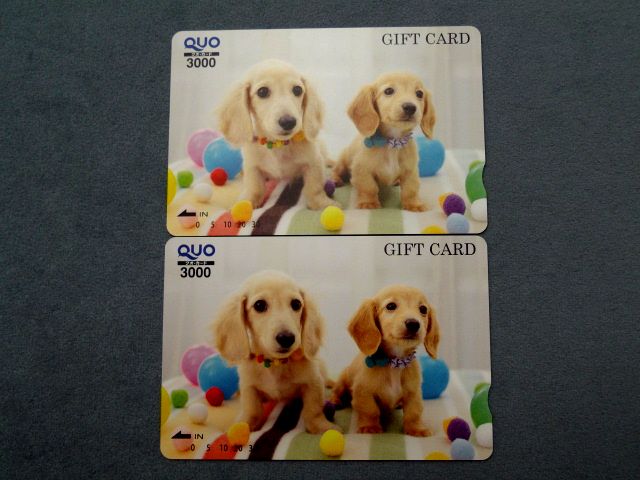 横須賀市からお越しのお客様より かわいいMダックス柄のクオカード 3000円券 2枚をお買取させていただきました!!