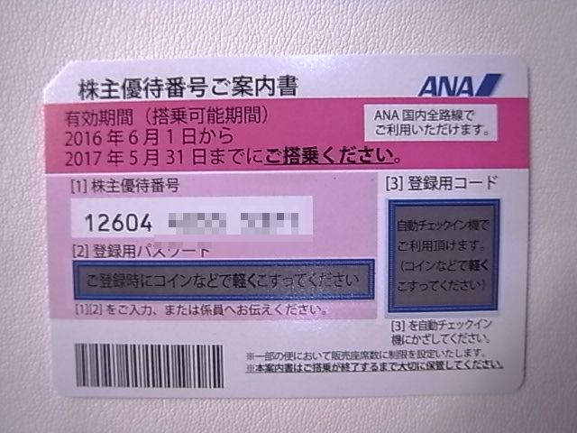 ANA株主優待券/新券1枚を高価買取させて頂きました!