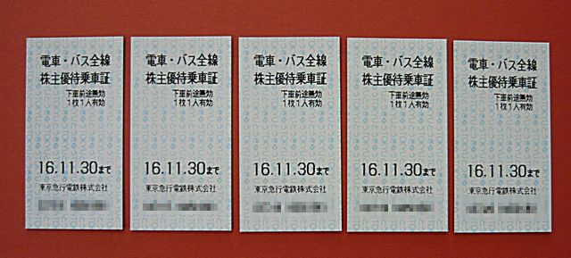 東急電鉄 株主優待乗車証×5枚をお買取りさせていただきました!