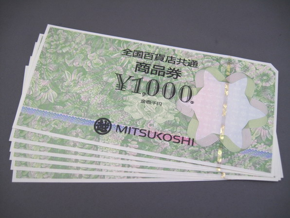 全国百貨店共通商品券1000円6枚を97.5%にてお買取りさせて頂きました!