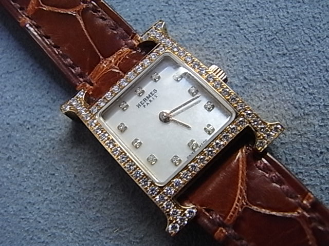 HERMES エルメス レディース クォーツ 腕時計 750PG/12Pダイヤ文字盤ダイヤベゼル Hウォッチ HH1.171 をお買取させて頂きました!
