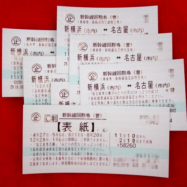 長津田で唯一質屋&買取専門店。即現金化!。新幹線回数券(新横浜ー名古屋)6枚綴り表紙付。 #質屋#