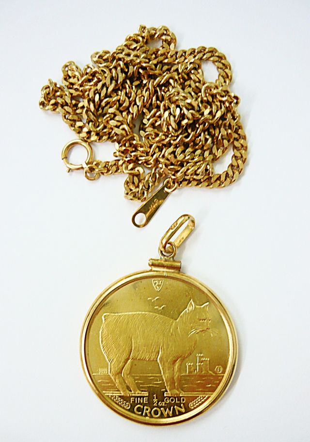 伊豆市からお越しのお客様から 純金 マン島 キャット金貨 1/2オンス + 18金 ネックレス をお買取させていただきました!!