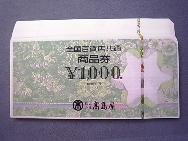 全国百貨店共通商品券1000円×35枚を額面の97.5%でお買取りさせて頂きました!