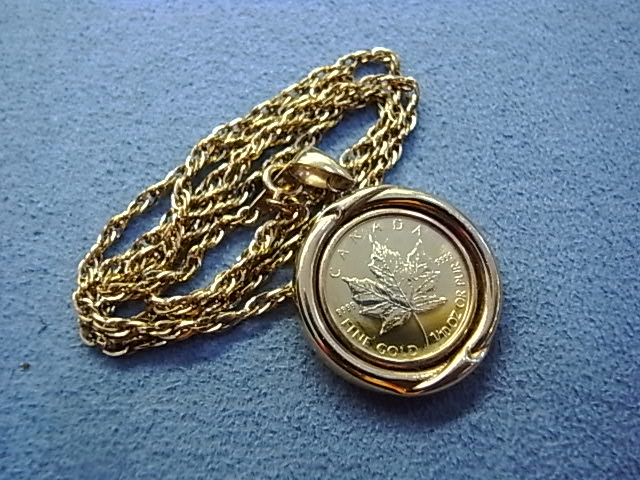 カナダ メイプルリーフ金貨 K24純金/9999 1/10OZ(オンス)/K18金枠ペンダントネックレス をお買取りさせて頂きました!
