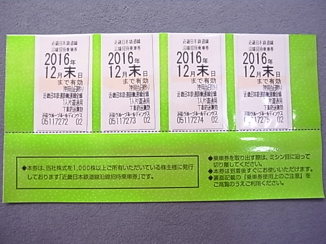 近鉄 株主優待乗車券4枚を高価買取させて頂きました!