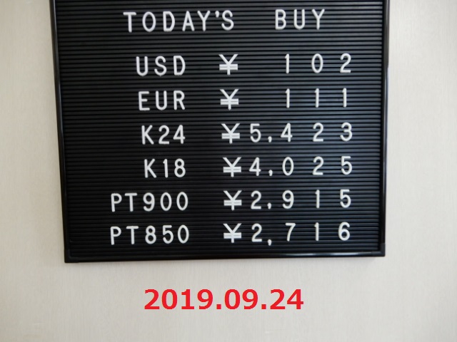 | 買取価格 | 4,025円 / g(2019.09.24 価格) |
