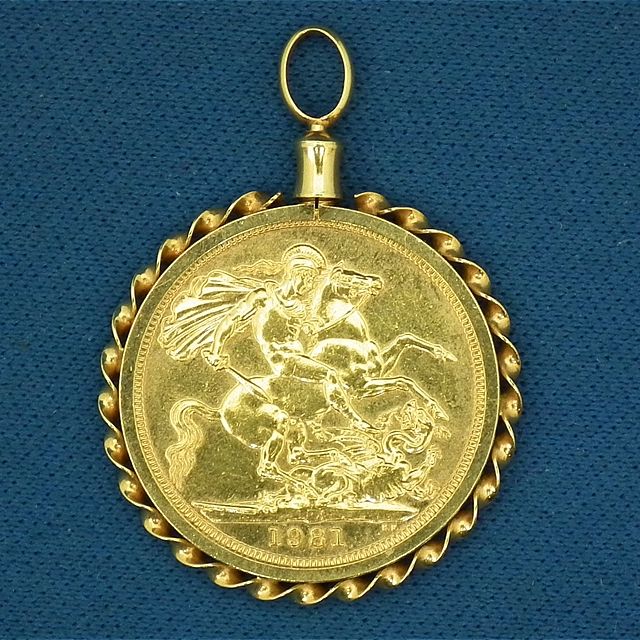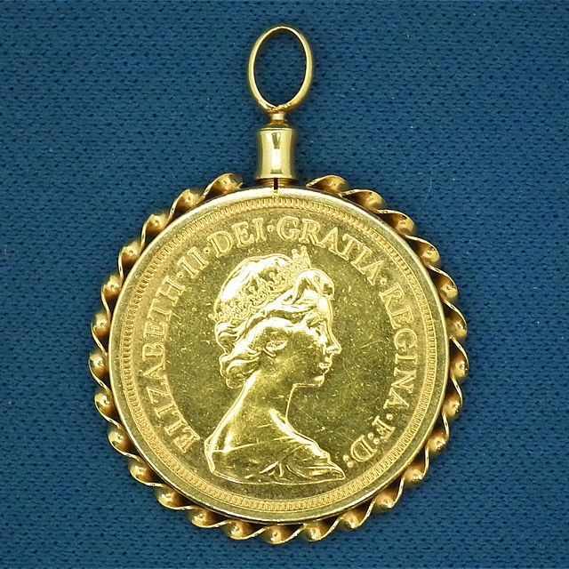 生駒市白庭台よりご来店!K22金 イギリス エリザベス2世 1ポンド金貨付ペンダントトップを買取させて頂きました!