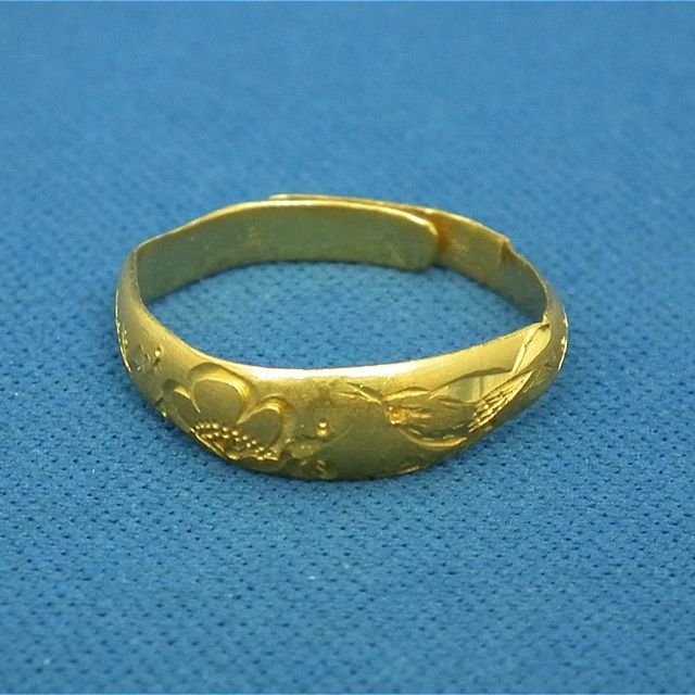 純金は柔らかいので、手で曲げてサイズ調整できるようになっています。このような形状の指輪は純金の可能性が高いです!是非お持込みください。