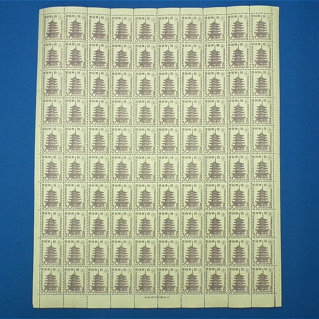| 買取商品 | 第2次新昭和 法隆寺五重塔 30銭 100枚シート 右書き のりつき |