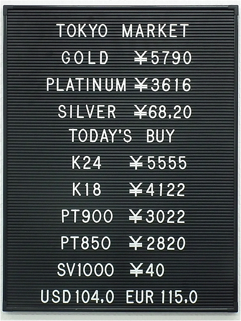 本日平成以降で金が最高値になっています!金を売るなら今がチャンス!年末の準備等に是非ご来店ください!