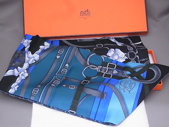 HERMES/エルメス マキシツイリー シルクスカーフ ネイビー/ブルー系 をお買取させて頂きました!