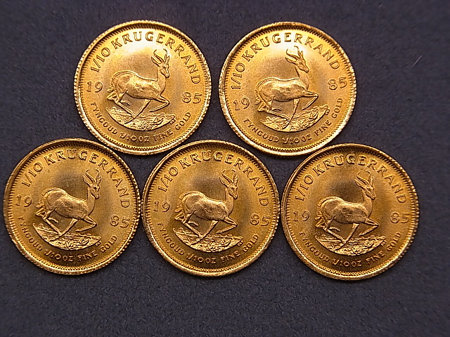 K22金 クルーガーランド金貨1/10oz (オンス)5枚 をお買取りさせて頂きました!