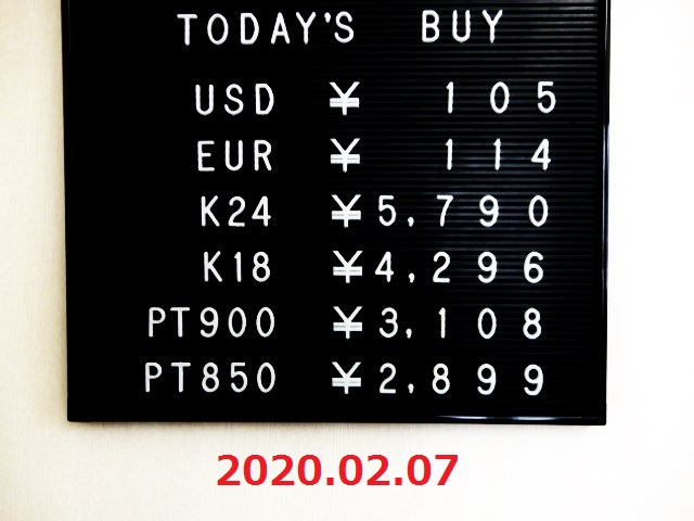 | 買取価格 | プラチナ850 2,899円 / g(2020.02.07 価格) |