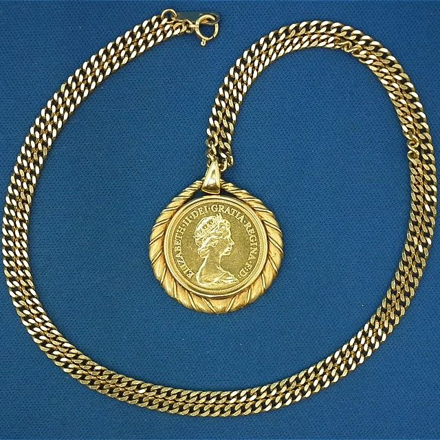 奈良市神功よりご来店!K22金 イギリス エリザベス2世 金貨付ペンダントトップネックレスを買取させて頂きました!