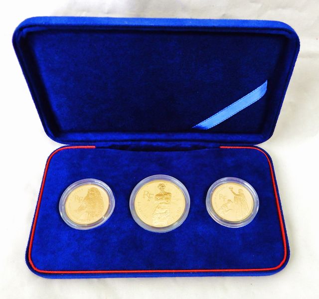 | 素材 | 500フラン金貨:999.9 / 純金(ミロのビーナス)31.1g 100フラン金貨:Au920(ナポレオンの戴冠式、マルガリータ王女)17.0g |