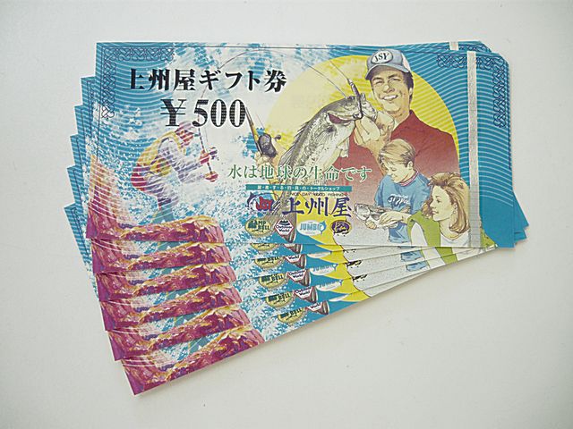 沼津市からお越しのお客様から 上州屋ギフト券 500円 × 6枚 をお買取りさせていただきました!