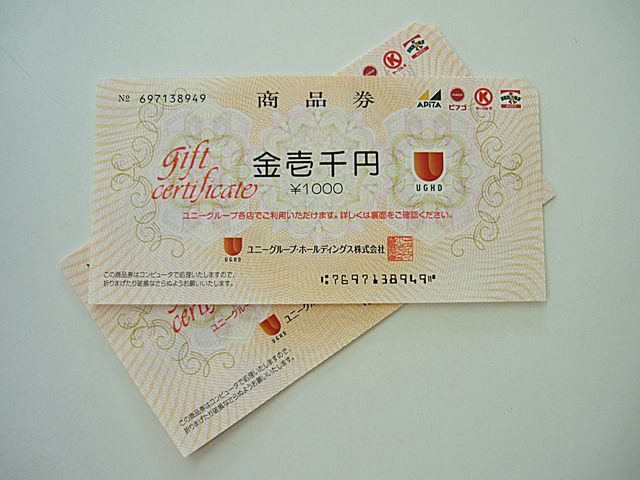 沼津市からお越しのお客様から ユニーグループ商品券 1000円 × 5枚 をお買取りさせていただきました!