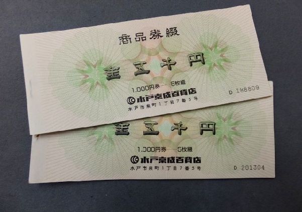 | 種類 | 水戸京成百貨店 商品券お内渡票 1,000円×10枚 |