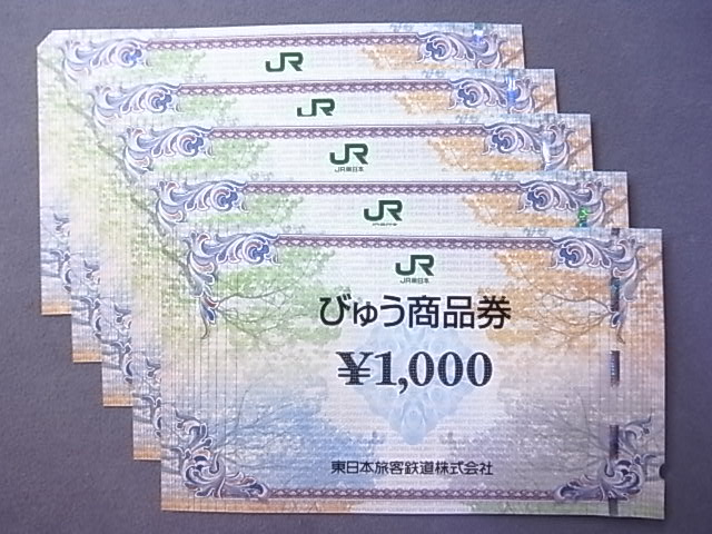 JRびゅう商品券1000円券5枚を額面の95%でお買取させて頂きました!