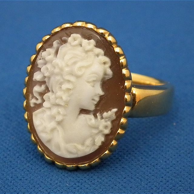 昔流行したカメオの指輪です。カメオは値段の付けれるもの付けれないものがございます。諦めずに是非一度ご相談ください!