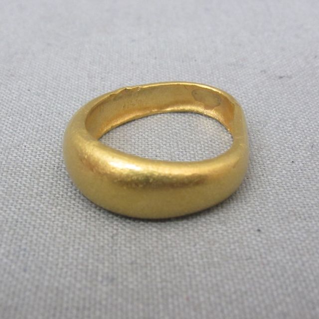 純金で出来た指輪です!純金は柔らかいのでこのような太い形状のものがほとんどです。それでも少し変形していました。ですが買取金額は変わりません。重さでの買取となります。