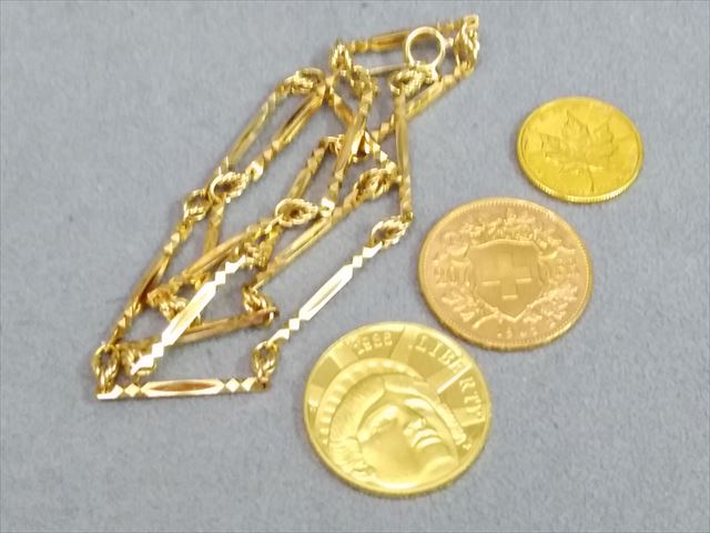 | 買取商品名 | K18金 ネックレスやK24金コイン、K21.6金コイン等 |