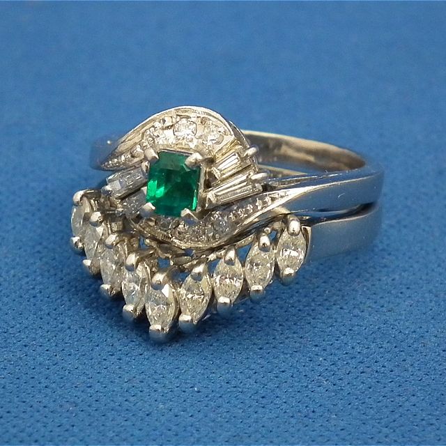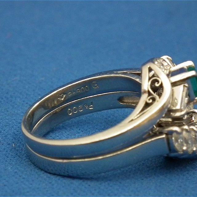 奈良市鳥見町よりご来店!エメラルド0.29ct ダイヤ0.22ct 0.50ct PT900 デザイン2連リングを買取させて頂きました!
