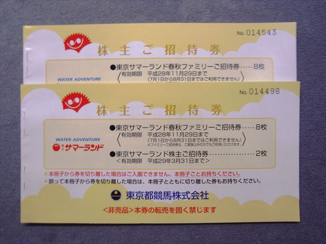 東京都競馬株式会社(サマーランド)株主優待券2冊お買取させて頂きました!
