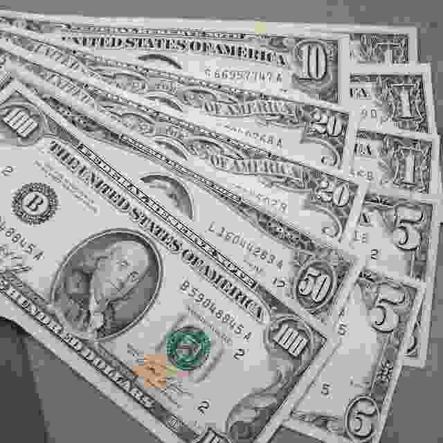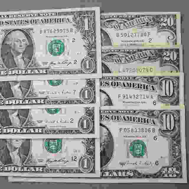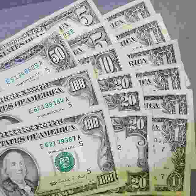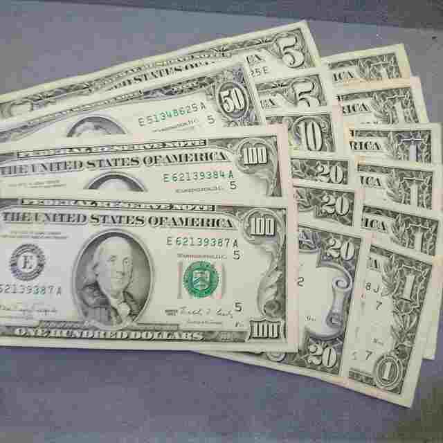 | 枚数 | 100ドルx2枚/50ドルx1枚/20ドルx3枚/10ドルx1枚/5ドルx2枚//1ドルx6枚 |
