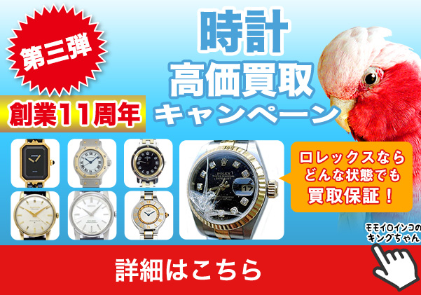 買取キングでは創業12周年時計買取キャンペーン実施中です!シャネル、エルメス、カルティエ、オメガ、タグホイヤー、ダンヒルなど、他店圧倒価格で買取中!ロレックスならどんな状態でも買取保証!是非お持込ください!